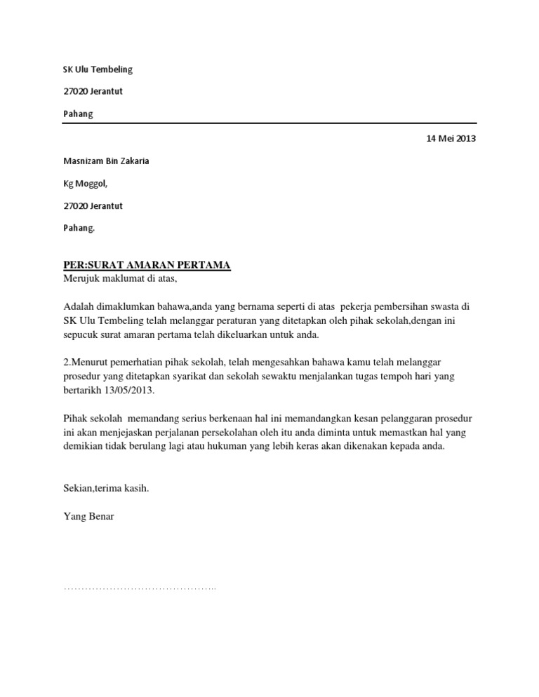Contoh Surat Amaran Pertama Letter 7saudara Com
